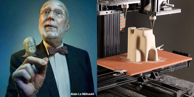 Contrairement à ce que l’on croit, l’impression 3D n’a pas été inventée par l’américain Charles "Chuck » Hull", mais par un petit groupe de français, initié par Alain Le Méhauté. A condition d’admettre que le père d’une technologie est celui qui en a eu l’idée et l’a réalisée et pas celui qui a déposé les "papiers" de propriété dans un organisme quelconque.